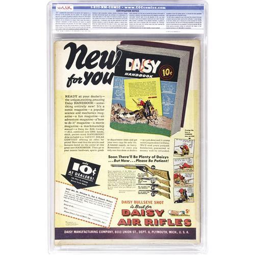 50. Since we cannot examine encapsulated notes or comics, they are sold "as is" without our grading opinion, and may not be returned for any reason. Auctioneer shall not be liable for any patent or latent defect or controversy pertaining to or arising from any encapsulated collectible. In any such instance, purchaser's remedy, if any, shall be solely against the service certifying the collectible.