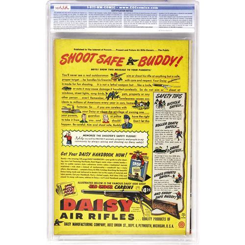 48C. COMICS – Comic books sold referencing a third-party grading service are sold "as is" without any express or implied warranty. Certain warranties may be available from the grading services and the Bidder is referred to them for further details: Comics Guaranty Corporation (CGC), P.O. Box 4738, Sarasota, FL 34230. Subject to sections 57 and 58, bidders who intend to challenge authenticity or provenance of a lot must notify Auctioneer in writing within thirty (30) days of the Auction's conclusion. Auctioneer's maximum liability shall not exceed the high bid on that lot, which bid shall be deemed for all purposes the value of the lot. In the event Auctioneer cannot deliver the lot or subsequently it is established that the lot lacks title, provenance, authenticity, or other transfer or condition issue is claimed, Auctioneer's liability shall be limited to recission of sale and refund of purchase price. After one year has elapsed, Auctioneer's maximum liability shall be limited to any commissions and fees Auctioneer earned on that lot.