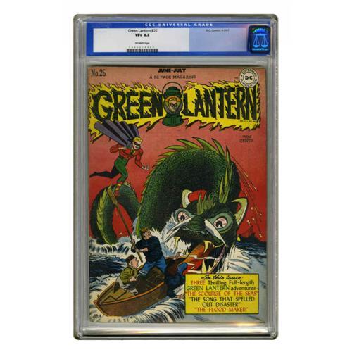 <B>Green Lantern #26 (DC, 1947) CGC VF+ 8.5 Off-white pages.</B></I> Very nice colors and page quality make this an attractive buy. This issue's got an Irwin Hasen cover and Howard Purcell art. Overstreet 2005 VF 8.0 value = $744; VF/NM 9.0 value = $1,147. CGC census 11/05: 2 in 8.5, 3 higher.