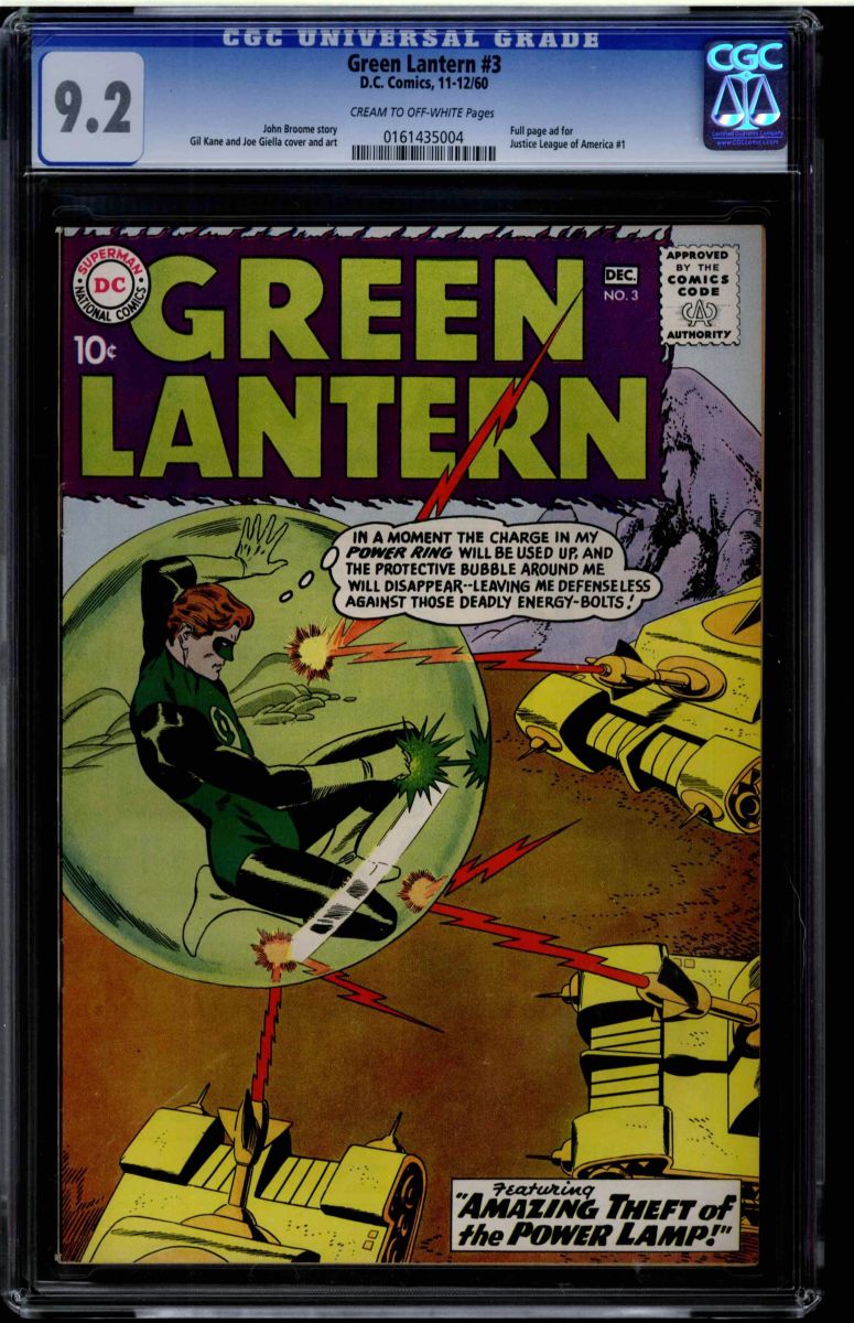 Green Lantern #3 CGC 9.2 cream to off-white pages. Overstreet 2009 NM 9.2 value = $1,000. The CGC universal census reports 1 at 9.2 and none higher. One of the 2 best copies of this book anywhere.