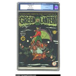 Green Lantern #3 (DC, 1942) CGC VF+ 8.5 Off-white to white pages. Something about the nicest copy (as graded to date by CGC) of a classic-covered issue of a famous Golden Age title that makes us want to keep this one for our offices. But that wouldn't go with our Alfred E. Neuman motif, so we will relent and let this one be a showpiece for this auction. Green Lantern creator Martin Nodell is responsible for this cover wherein GL knocks Nazis off the planet. Not much keeps this from claiming Near Mintability. The black of the front cover is uncompromised, and the white of the predominantly white back cover is brilliant. Maybe we'll change our office motif.... Overstreet 2002 VF 8.0 value = $3,000. Important notice: We expect to be auctioning lots at the rate of 200-250 per hour. Sometimes eBay Premier live bid software cannot keep up with that pace, so we strongly recommend that you place a realistic proxy bid now as insurance to avoid disappointment. Also please note that all Heritage/CAA lots purchased through eBay Premier carry a 20% Buyer's Premium. Please make sure you read the Terms and Conditions.