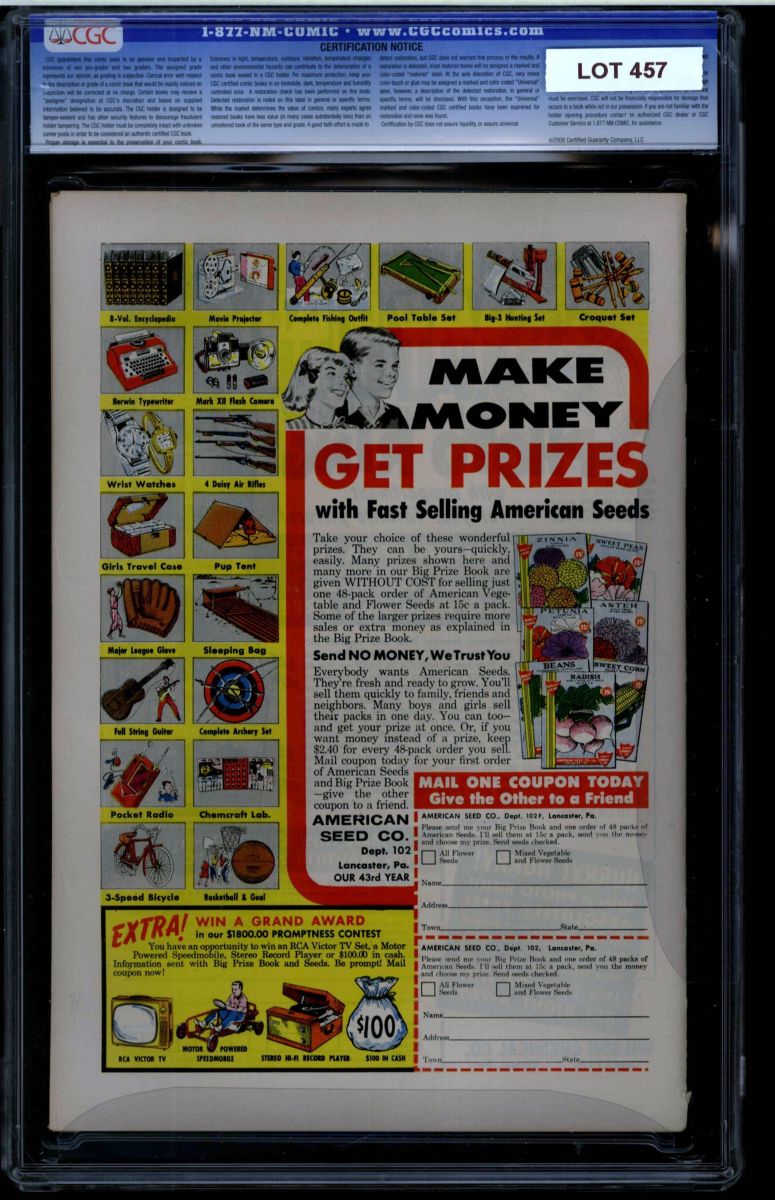 The Auctioneer has reserved the right to reject any and all bids, and to bid at the auction. Auctioneers Auctions are not on approval. Auctioneer does not allow certified material to be returned because of possible differences of opinion with respect to the grade offered by any third party organization, dealer, or service. Absolutely no guarantee of grade is offered for un-certified property sold and subsequently submitted to a third-party grading service. There will be no exceptions to this policy. Under extremely limited circumstances, (e.g. gross cataloging error) a purchaser, who did not bid from the floor, may request Auctioneer to evaluate voiding a sale; such request must be made in writing detailing the alleged gross error, and submission of the lot to the Auctioneer must be pre-approved by the Auctioneer. Bidder must notify Auctioneer in writing of such request within three (3) days of the non-floor bidder receipt of the lot. Any lot that is to be evaluated must be in our offices within 30 days after Auction. Grading does not qualify for this evaluation process nor do such complaints constitute a basis to challenge the authenticity of a lot. AFTER THAT 30-DAY PERIOD, NO LOTS MAY BE RETURNED FOR REASONS OTHER THAN AUTHENTICITY. Lots returned must be housed intact in the original holder. No lots purchased by floor Bidders may be returned (including those Bidders acting as agents for others). Late remittance for purchases may be considered just cause to revoke all return privileges. B: Auctions conducted solely on the Internet have a THREE (3) DAY RETURN POLICY: Lots paid for within seven days of the Auction closing are sold with a three (3) day return privilege. You may return lots under the following conditions: Within three days of receipt of the lot, you must first notify Auctioneer by contacting Client Service by phone (314-680-8599) or e-mail (moundcityauctions@gmail.com), and immediately mail the lot(s) fully insured to the attention of Returns, Mound City Auctions 1081 Teson Rd. Hazelwood, MO. 63042. Lots must be housed intact in their original holder and in their original condition. You are responsible for the insured, safe delivery of any lots. Auctioneer will not be responsible for lots returned in non-registered mail or lots returned without prior authorization per section B. A non-negotiable return fee of 5% of the purchase price ($10 per lot minimum) will be deducted from the refund for each returned lot or billed directly. Postage and handling fees are not refunded. After the three-day period (from receipt), no items may be returned for any reason. Late remittance for purchases revokes all Return-Restock privileges. C: Bidders who have inspected the lots prior to the auction will not be granted any return privileges. D: Comic books sold referencing a third-party grading service are sold “as is” without any express or implied warranty. Certain warranties may be available from the grading services and the Bidder is referred to them for further details: Certified Guaranty Company, LLC. (CGC), P.O. Box 4738, Sarasota, FL 34230. E: Bidders who intend to challenge authenticity or provenance of a lot must notify Auctioneer in writing within thirty (30) days of the Auctions conclusion. In the event Auctioneer cannot deliver the lot or subsequently it is established that the lot lacks title, provenance, authenticity, or other transfer or condition issue is claimed, Auctioneer's liability shall be limited to rescission of sale and refund of purchase price; in no case shall Auctioneer's maximum liability exceed the high bid on that lot, which bid shall be deemed for all purposes the value of the lot. After one year has elapsed, Auctioneer's maximum liability shall be limited to any commissions and fees Auctioneer earned on that lot. F: All comics are guaranteed genuine, but are not guaranteed as to grade, since grading is a matter of opinion, an art and not a science, and therefore the opinion rendered by the Auctioneer or any third party grading service may not agree with the opinion of others (including trained experts), and the same expert may not grade the same item with the same grade at two different times. G: Since we cannot examine encapsulated comics, they are sold “as is”without our grading opinion, and may not be returned for any reason. Auctioneer shall not be liable for any patent or latent defect or controversy pertaining to or arising from any encapsulated collectible. In any such instance, purchaser's remedy, if any, shall be solely against the service certifying the collectible. H: Due to changing grading standards over time, differing interpretations, and to possible mishandling of items by subsequent owners, Auctioneer reserves the right to grade items differently than shown on certificates from any grading service that accompany the items. Auctioneer also reserves the right to grade items differently than the grades shown in the prior catalog should such items be reconsigned to any future auction. I: Although consensus grading is employed by most grading services, it should be noted as aforesaid that grading is not an exact science. In fact, it is entirely possible that if a lot is broken out of a plastic holder and resubmitted to another grading service or even to the same service, the lot could come back with a different grade assigned. J: Certification does not guarantee protection against the normal risks associated with potentially volatile markets. The degree of liquidity for certified collectibles will vary according to general market conditions and the particular lot involved. For some lots there may be no active market at all at certain points in time."