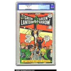 Green Lantern #89 (DC, 1972) CGC NM+ 9.6 White pages. The final issue of the Neal Adams series featured another creative cover. This copy is astounding. Perhaps even more astounding is the fact this isn't the nicest copy CGC has verified of the issue, but it falls short by only a quarter-grade and currently ranks as the second-best copy in CGC's census. Overstreet 2002 NM 9.4 value = $45. Important notice: We expect to be auctioning lots at the rate of 200-250 per hour. Sometimes eBay Premier live bid software cannot keep up with that pace, so we strongly recommend that you place a realistic proxy bid now as insurance to avoid disappointment. Also please note that all Heritage/CAA lots purchased through eBay Premier carry a 20% Buyer's Premium. Please make sure you read the Terms and Conditions.