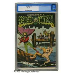 <B>Green Lantern #9 (DC, 1943) CGC VF- 7.5 Off-white pages.</B></I> There are worse fates than being punched out by Green Lantern... like getting a monkey wrench to the head from Doiby Dickles, <I>ow</B></I>! The cover action is the work of Sheldon Moldoff, while the interior art is by GL's creator, Martin Nodell. Mutt and Jeff contribute some grins in a backup feature. Overstreet 2004 VF 8.0 value = $1,175. CGC census 12/04: 1 in 7.5, 2 higher. <I>From the Northern Lights Collection.</B></I>