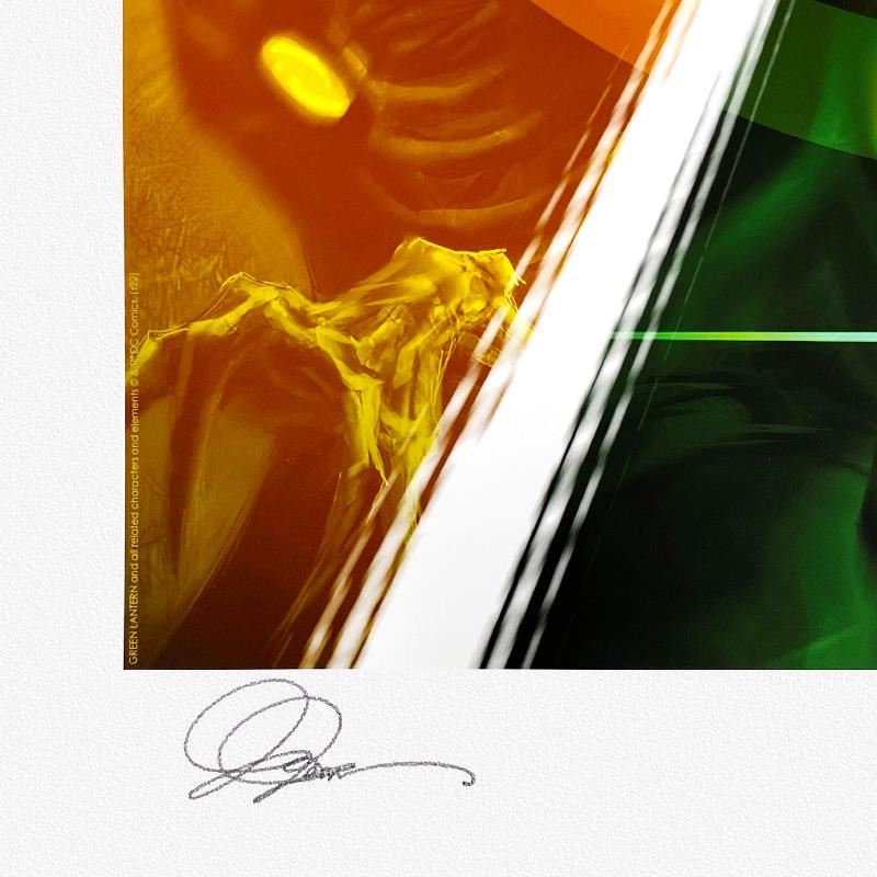 "Green Lantern: Brightest Day" is a limited edition giclee on paper by Alex Garner, PP numbered 3/4 and bearing the authorized signature of the artist. Includes Letter of Authenticity. Measures approx. 24" x 18" (border) 20" x 14" (image).