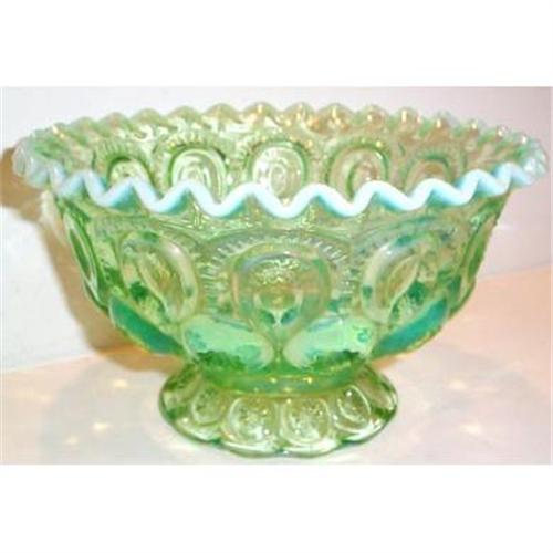 <tr><td>Title:Green Opalescent Moon and Stars Footed Bowl</td></tr>
