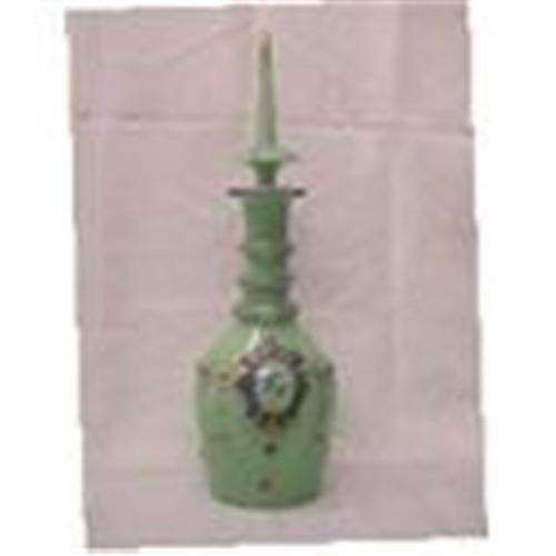 <tr><td>Title:Green Opaline Jeweled painted Decanter</td></tr>