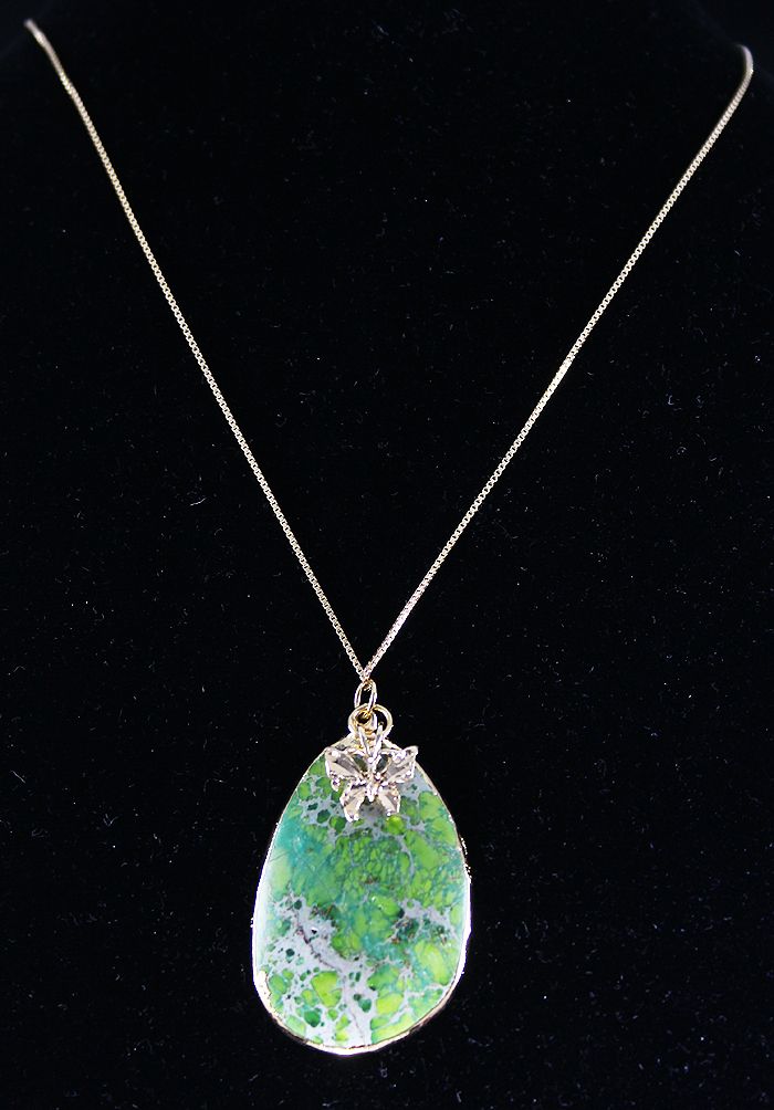 Green Opaline Necklace with Butterfly Necklace **|**|** Green Opaline Necklace with Butterfly Necklace ; MSRP: $100