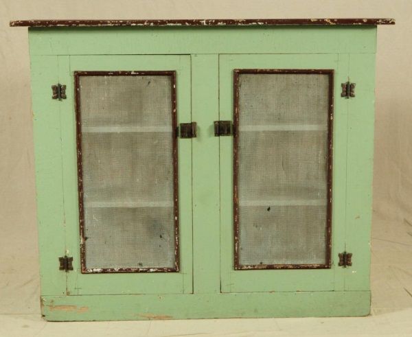 2 screen doors, screen sides old red paint on top and around trim. 20" deep x 50 3/4" wide x 42 1/4" tall.