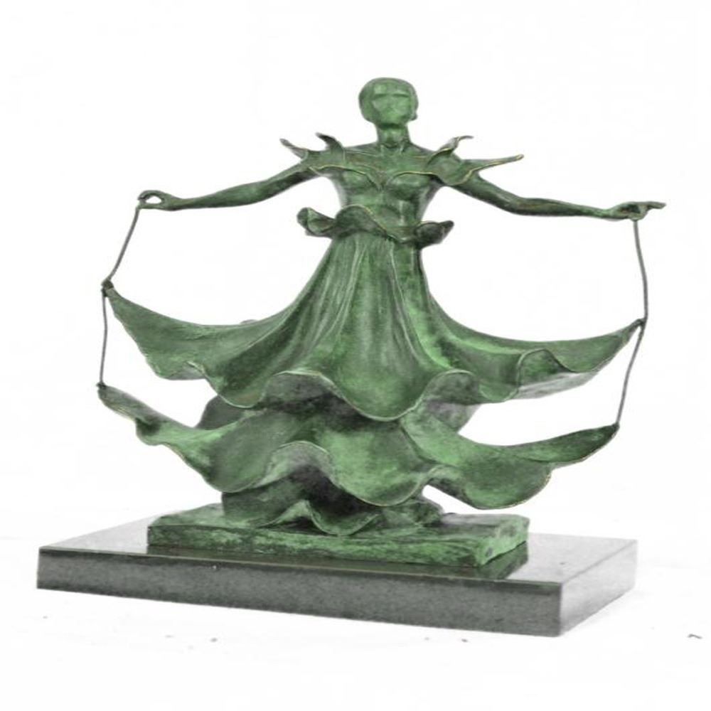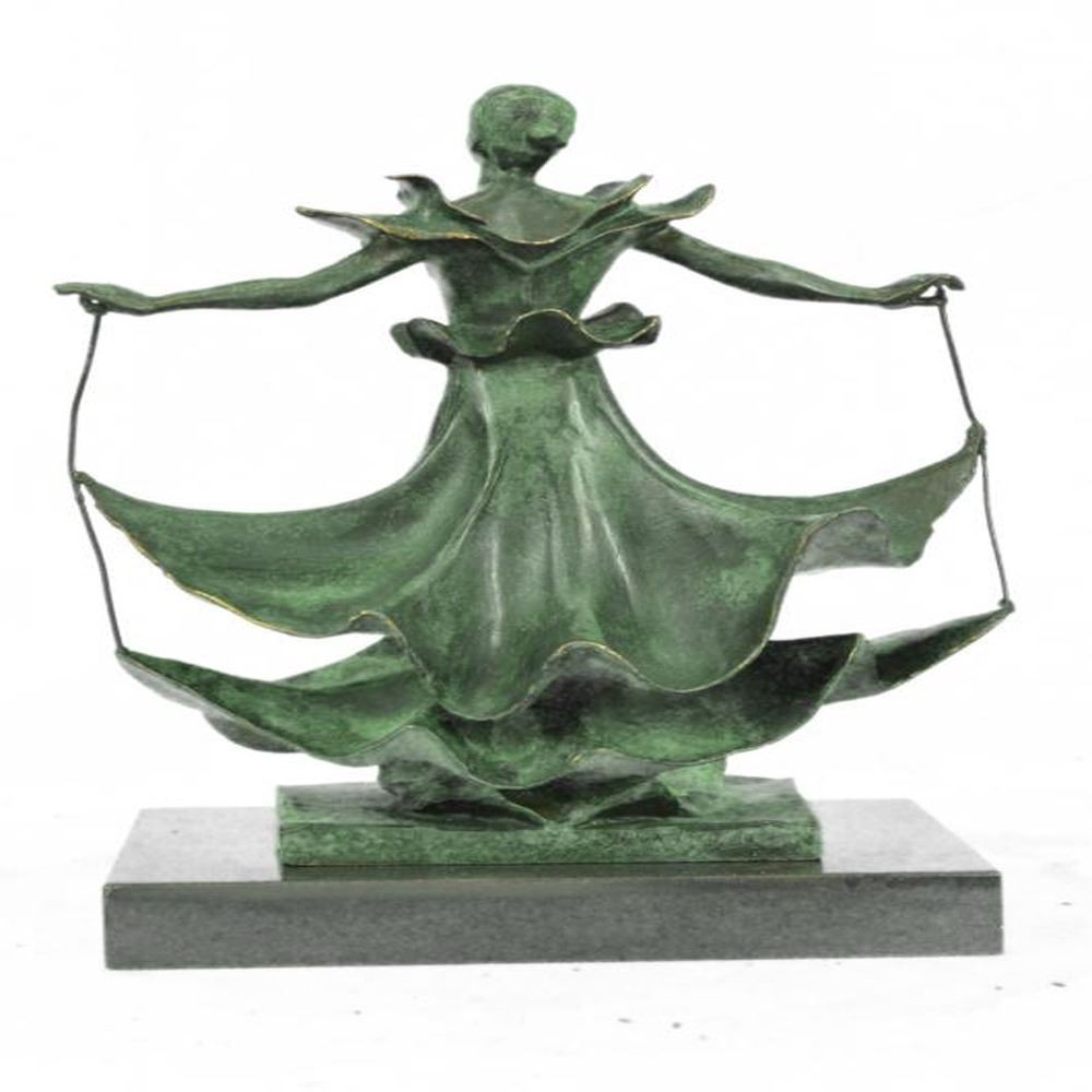 Beautiful Dancer with the layers of her dress floating up as she twirls. This Sculpture was cast using the Lost Wax Method and has a patina. Bronze Dimensions with Marble Base: Height 13 X Width 9 inches. Weight: 15 LBS.