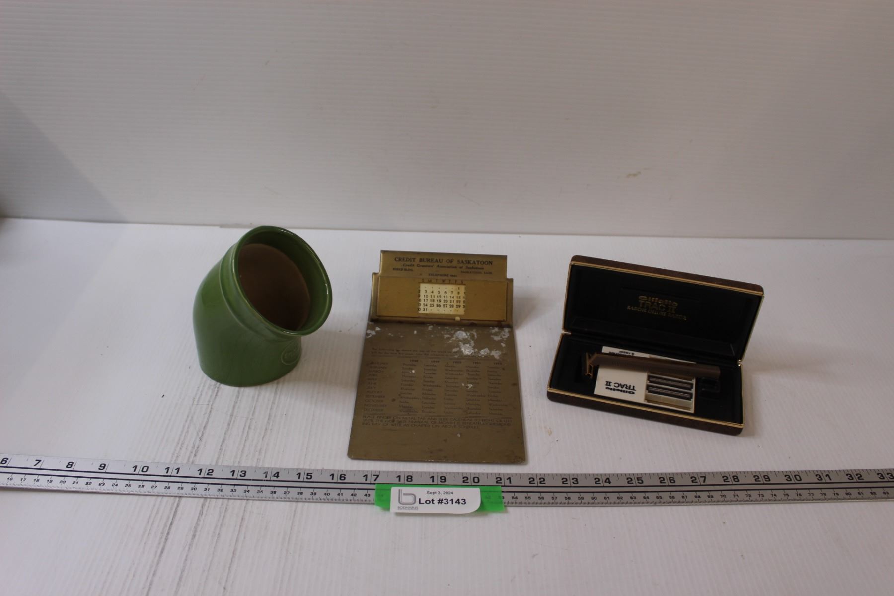 Green Pipe Planter, Credit Bureau Clip Board, Gillette Razor Set