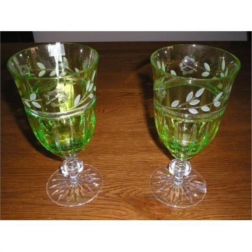 2 Green Hungarian Crystal wine glasses in the Proinnseas pattern.