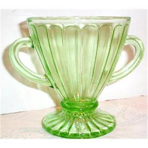 <tr><td>Title:Green Ribbon Depression Glass Footed Sugar</td></tr>