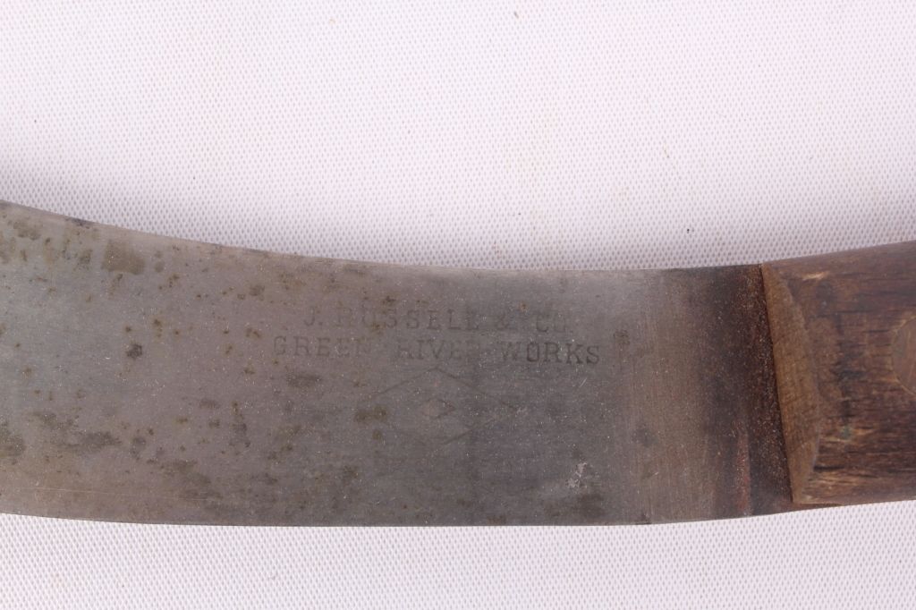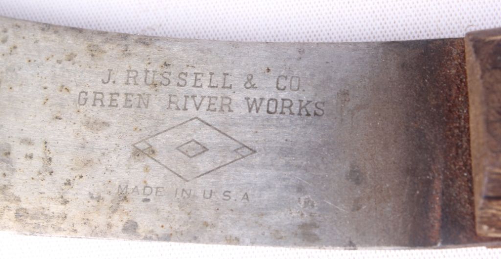 This lot features a skinner knife made by J. Russell & Co. Green River Works. It is in good condition. It measures 10.5" in length