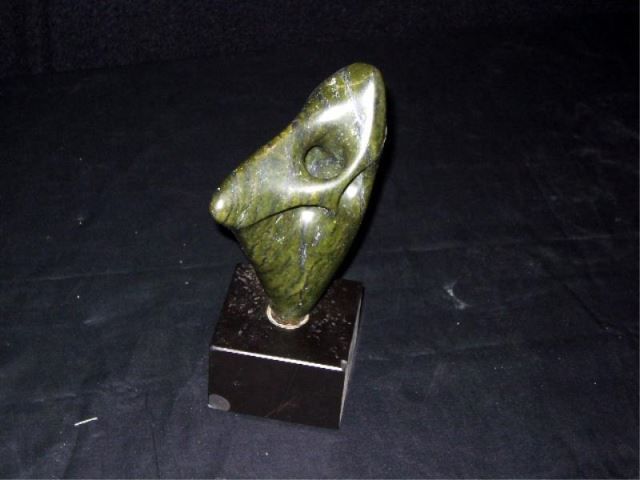 Green Serpentine Stone Sculpture on Black Marble Base, Unknown Artist 6 1/2"x2"x4" on Base Measuring
