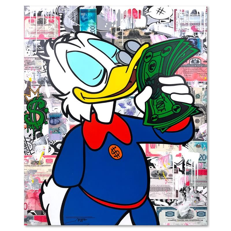 "Green Stack" is a unique mixed media acrylic on gallery wrapped canvas by Jozza. Hand Signed by the artist and titled in verso, the piece comes with a letter of authenticity. Measures approximately 40" x 48" (image).