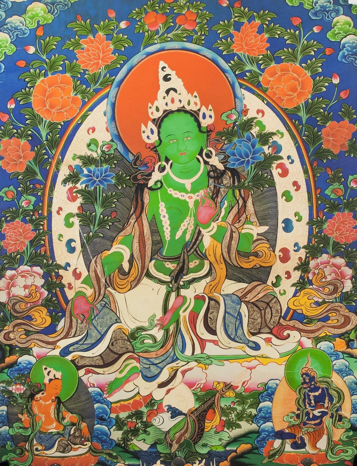 Print Tanka (thangka) on cloth. Featuring Green Tara. 89 x 67 cm