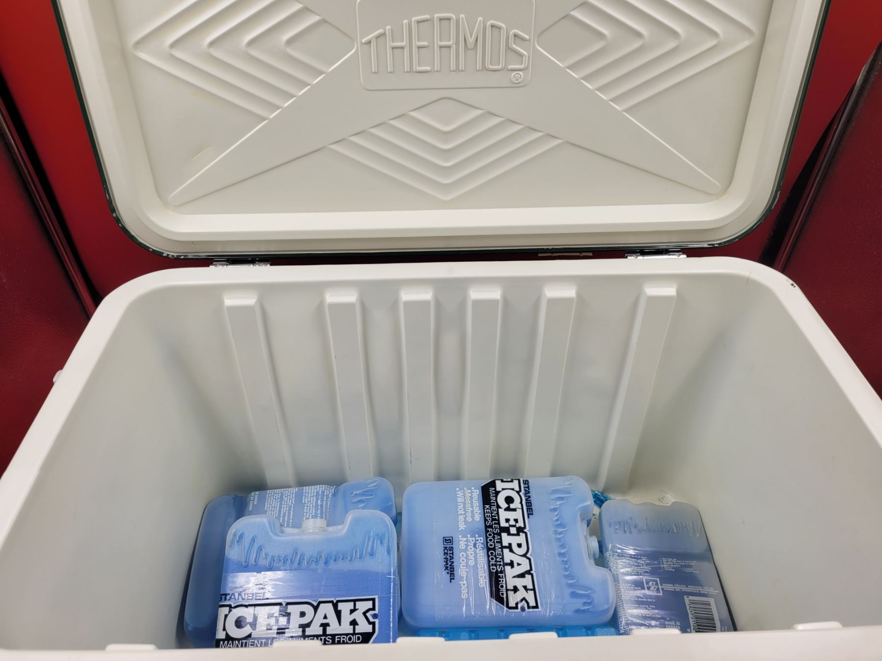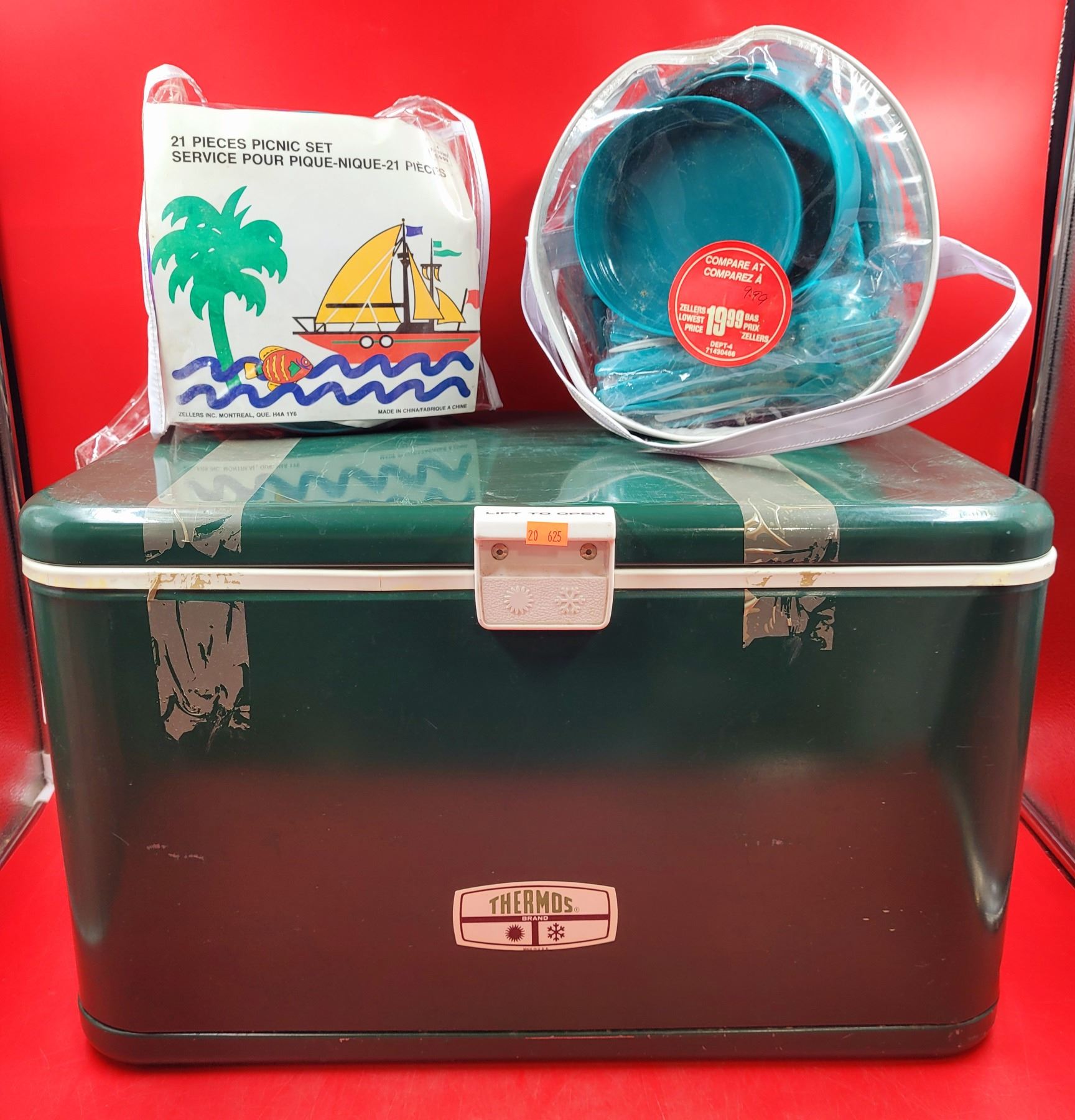 Green Thermos Cooler, 21 Pieces Picnic Set & Plastic Dish/Utensil Set w/ Ice Packs