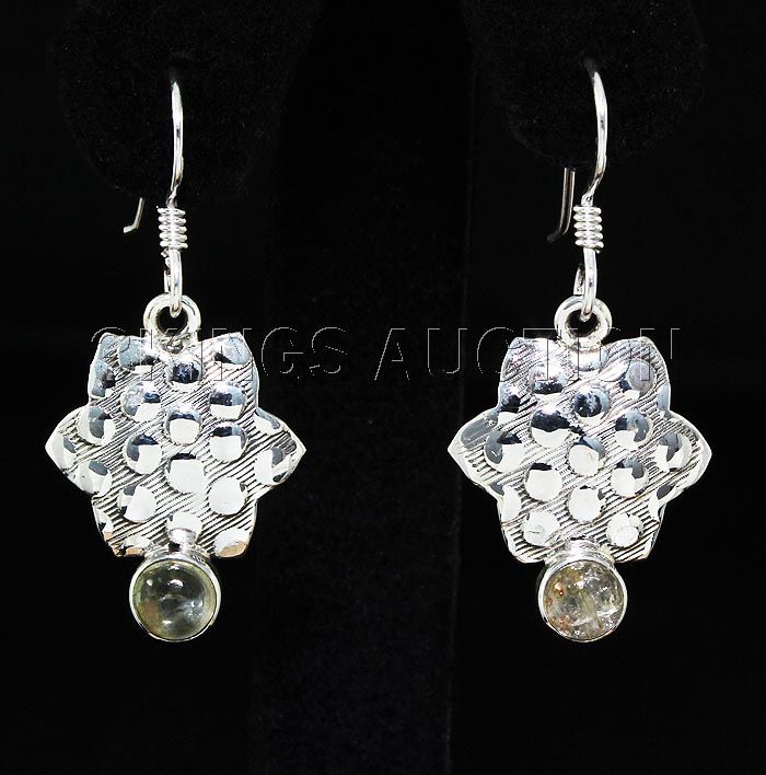 Green Tourmaline 18.02ctw Star Design .925 Hook Earring **|**|** 1.40in. Long Sterling Silver Dangling Hook Earring with a Cabochon Green Tourmaline Gem Measuring 5mm Round ; MSRP: $400