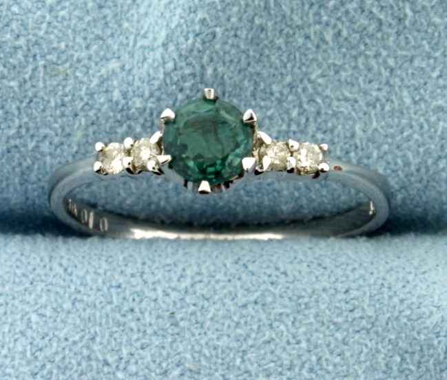 In 14k white gold. Contains 1/2ct high quality natural green tourmaline gemstones with bright green color. Also contains four .02ct high quality diamonds in shank of SI clarity/H color. Size 8 1/2. 1.8g.