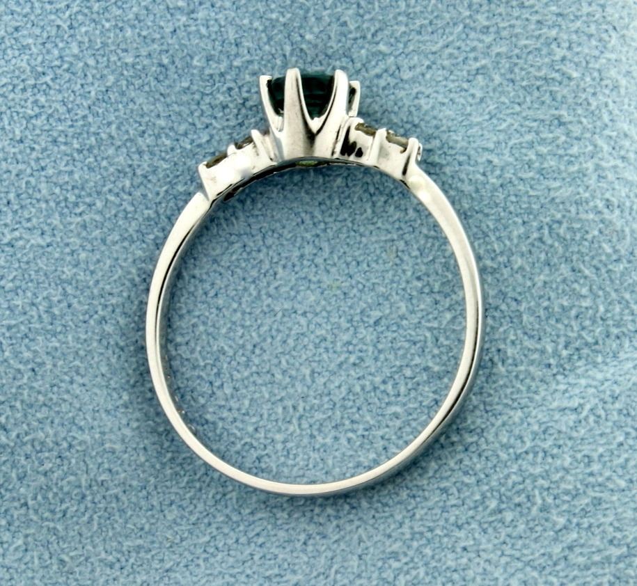 In 14k white gold. Contains 1/2ct high quality natural green tourmaline gemstones with bright green color. Also contains four .02ct high quality diamonds in shank of SI clarity/H color. Size 8 1/2. 1.8g.