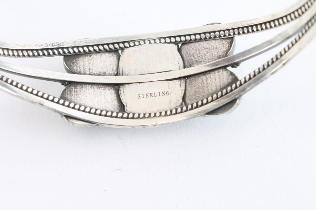 Navajo made set in sterling silver. Measures 9" with gap.