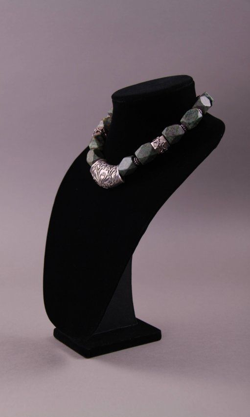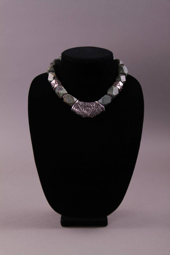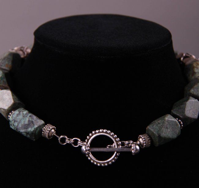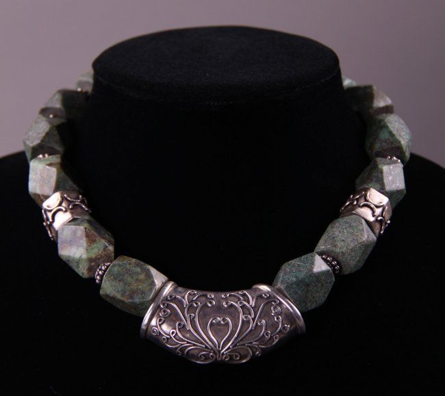 Green Turquoise Silver Necklace from mid1900's. Stamped 925. (Size: See last photo for measurement.)