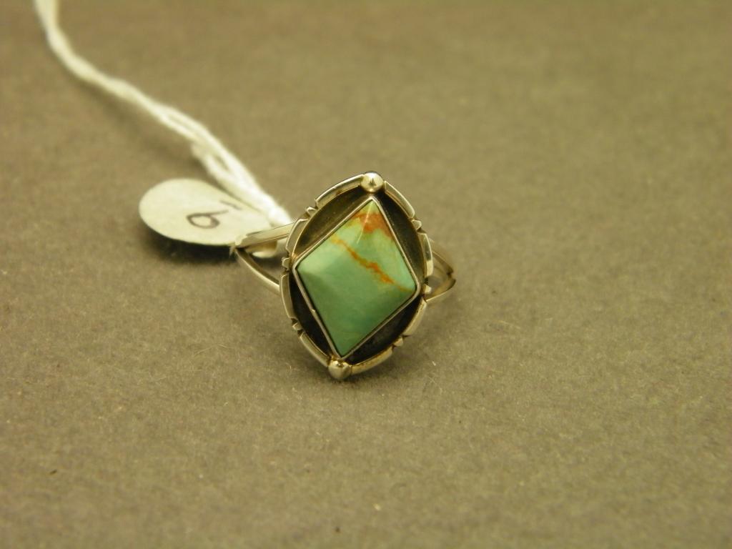 Green Turquoise & Sterling Navajo Ring-Size 9- RB-