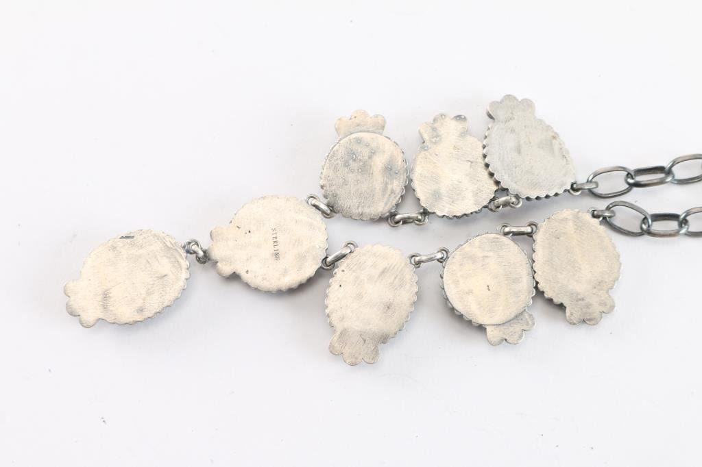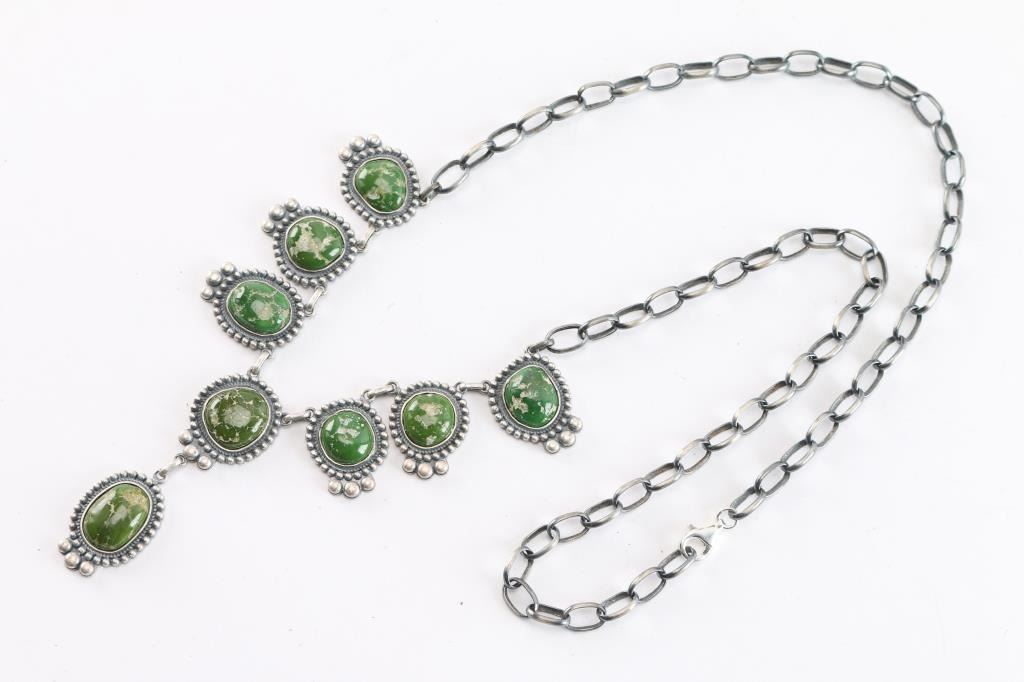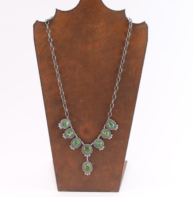 8 Stone Turquoise Necklace Set In Satin Finished Sterling.