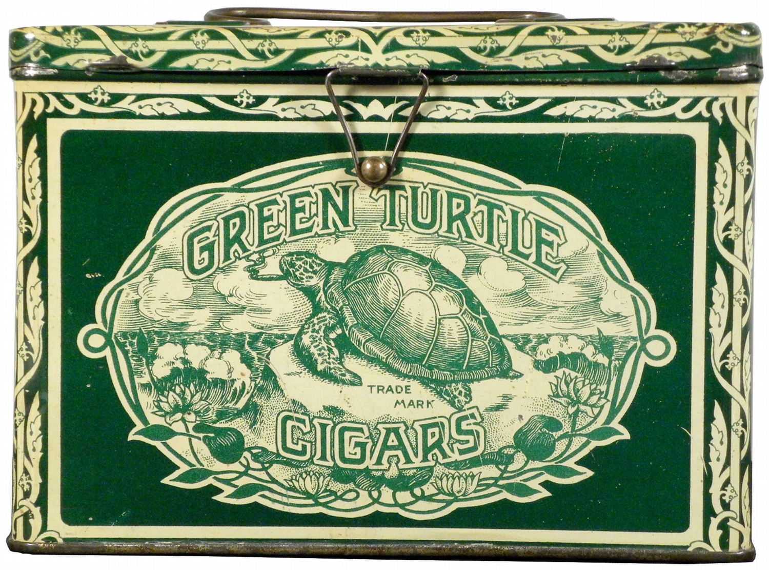 Green Turtle Lunch Pail Cigar Tin-100's. Excellent condition.