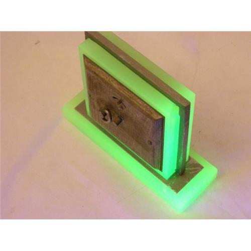 DESCRIPTION: Green Uranium (Depression) Glass Chrome Clock Glows Brightly with UV Light ~~~<p>SIZE: 14cm long by 4.5cm deep. It stands around 12.5cm tall and the face with surround is around 10.5cm square.<p> ~~~ CONDITION: Very good condition, working with good chrome, glass is great except The glass case is good except a slender flake off the rear right hand corner of the base and a chip to the rear left hand upper corner of the clock case. Not a bad chip, though and it still displays very well. These minor flaws are not seen when displayed.
