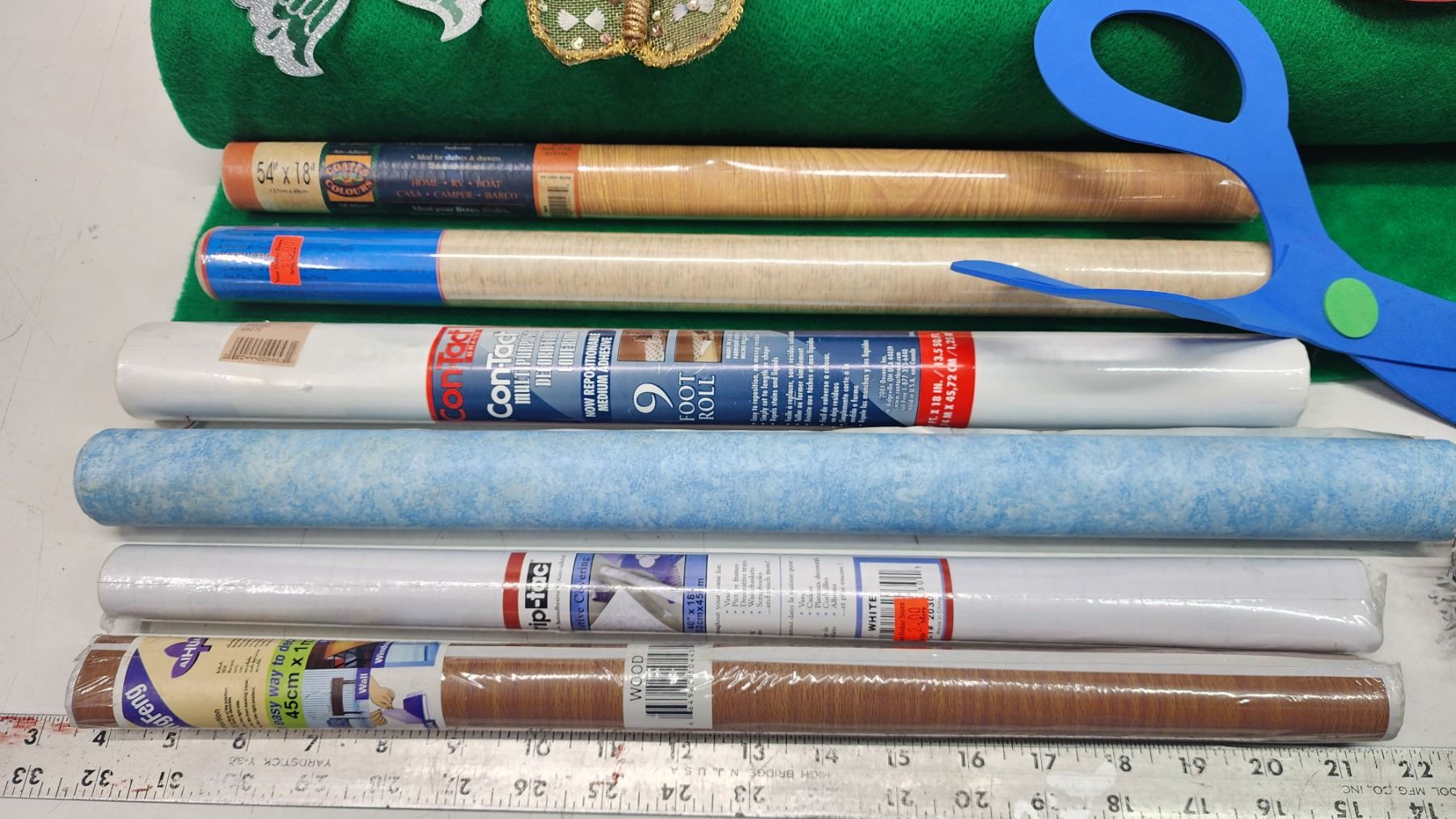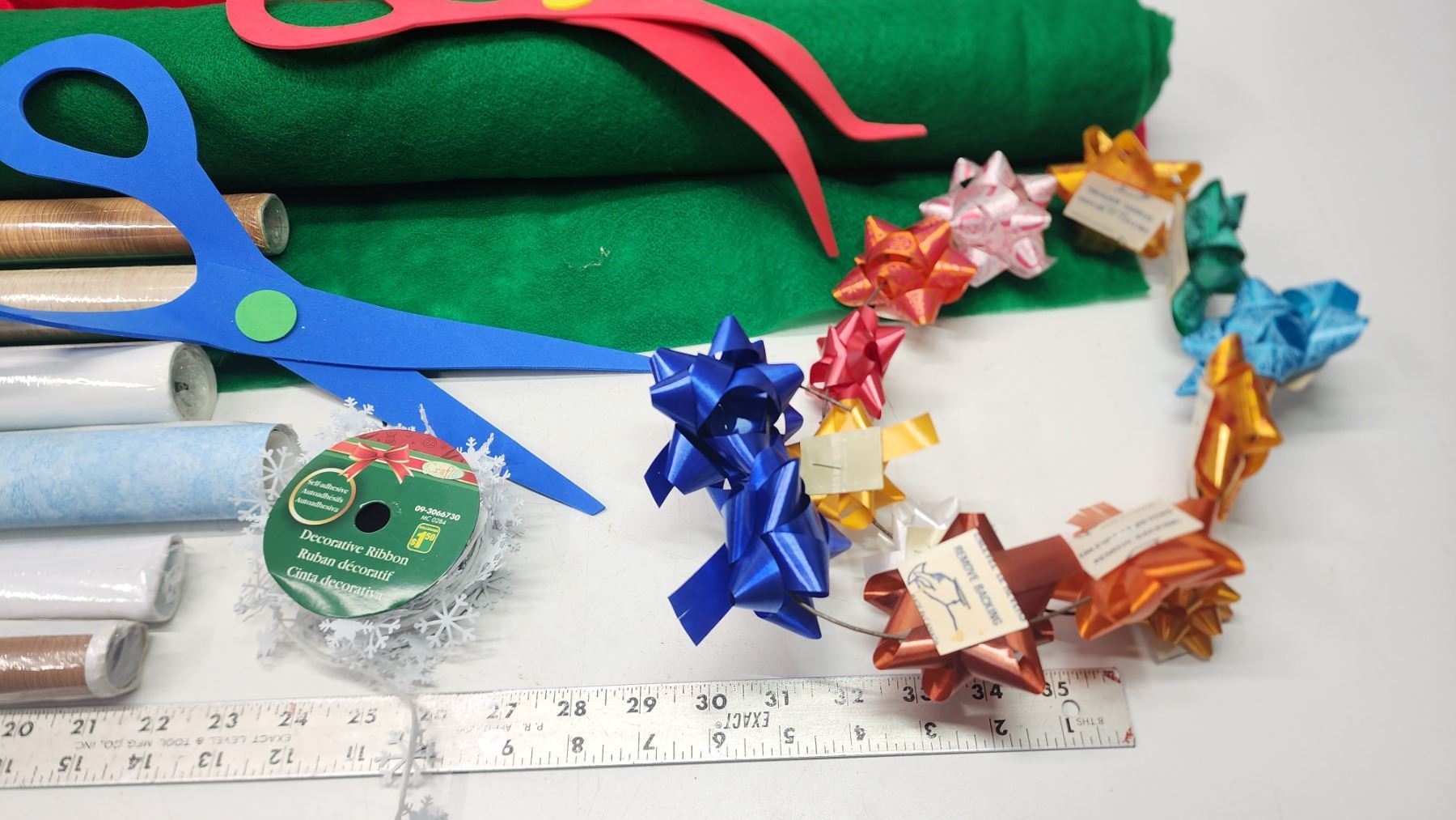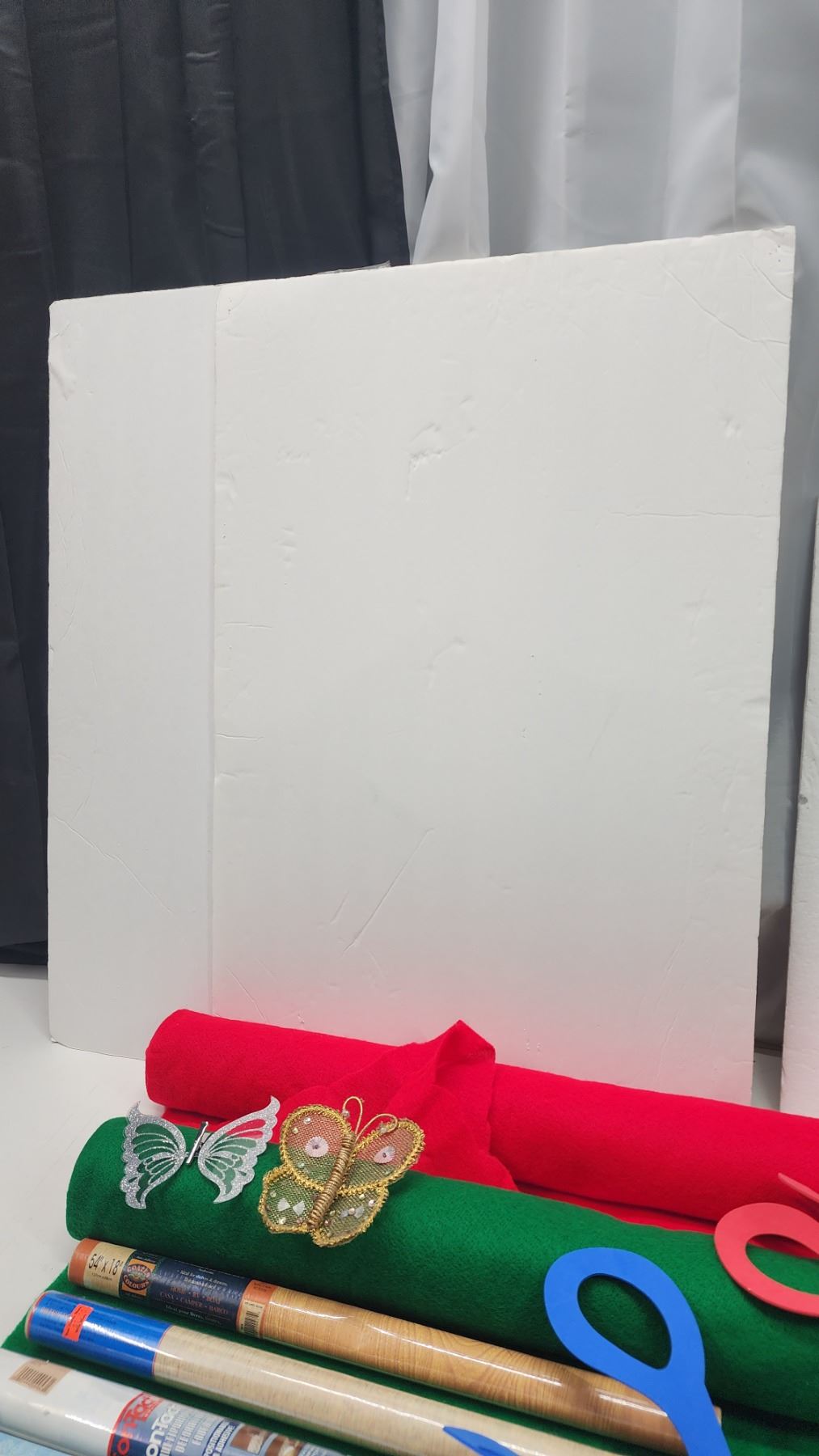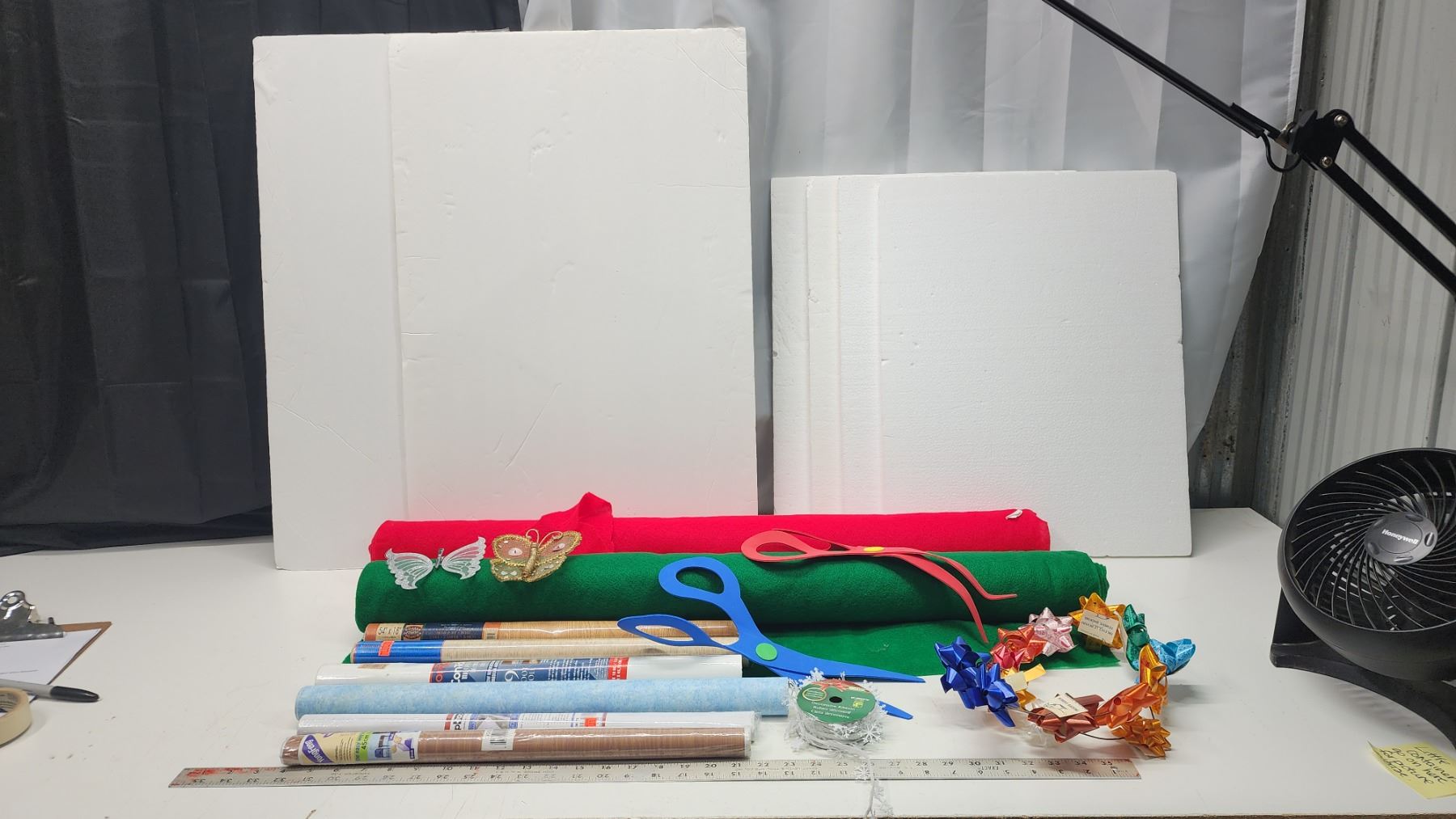 Green and Red Roll of Crafting Felt, 6 Rolls of Grip Tac, Styrofoam and extra crafting supplies