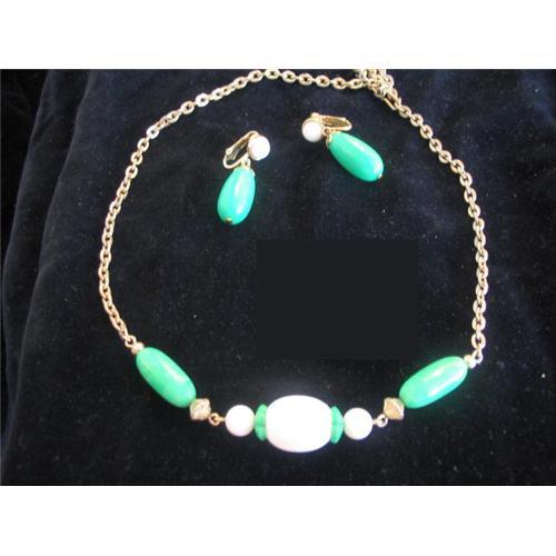 <tr><td>Title:Green and White Avon Demi Parure Set of 2</td></tr>