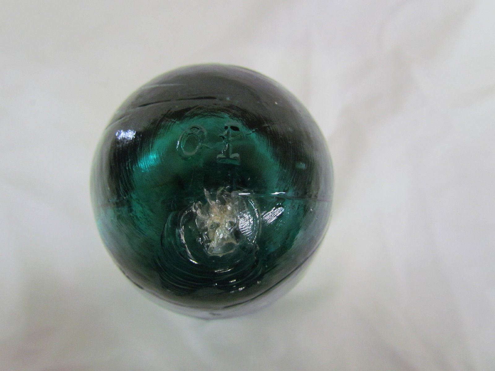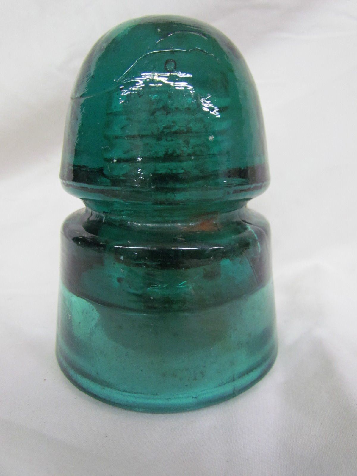 Green glass insulator 4" - crack on top