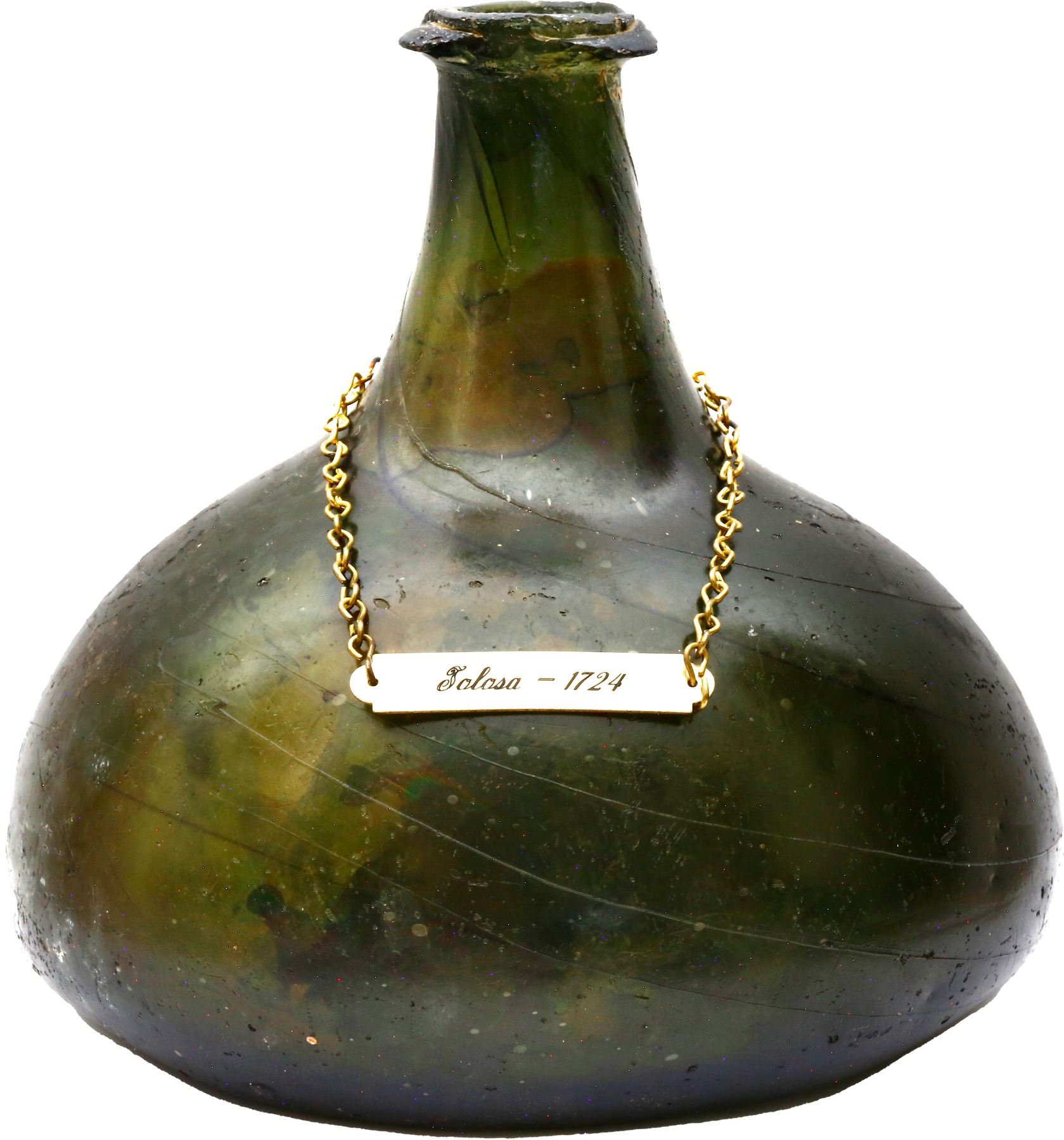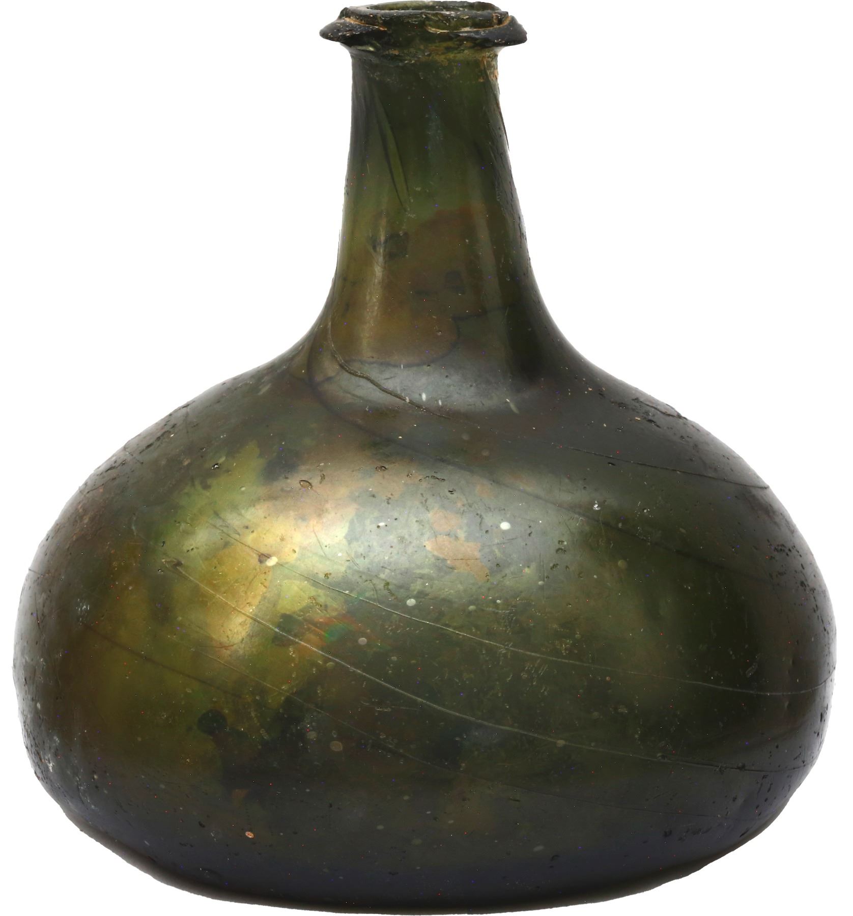 Green-glass "onion" bottle, intact, ex-Tolosa (1724).