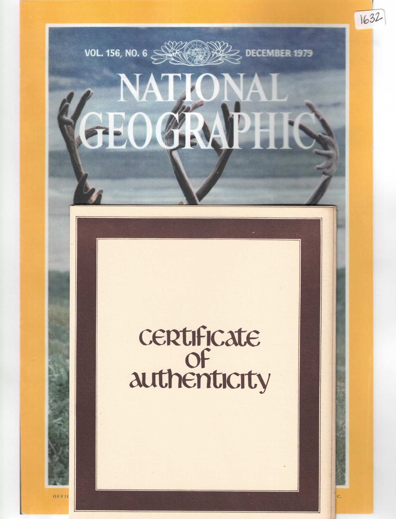 Green-glass "onion" bottle, intact, ex-Tolosa (1724). 977 grams. 6" tall, 6" diameter at base. Short and squat, dark green-glass bottle, with very deep pontil having sunk under the weight of the glass, crude lip with a few chips, around its neck a metal chain and tag that indicates it came from the Tolosa wreck specifically. From the Tolosa (1724), with original certificate from Captain Tracy Bowden through his contract with the Dominican Republic and copy of the article "Graveyard of the Quicksilver Galleons" by Mendel Peterson from the December 1979 issue of National Geographic signed by Bowden.