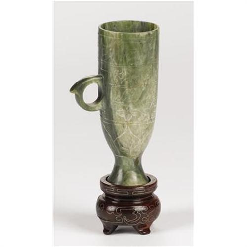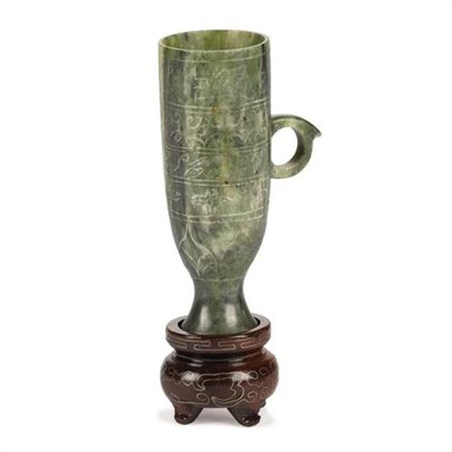 <B>A Green Hardstone Carving of a Handled Beaker</B></I><BR>5-1/4 inches tall <BR><BR><b>Shipping:</b> Requires 3rd Party Shipping (<a target="_blank" href="http://www.heritageauctions.com/common/shipping.php">view shipping information</a>)