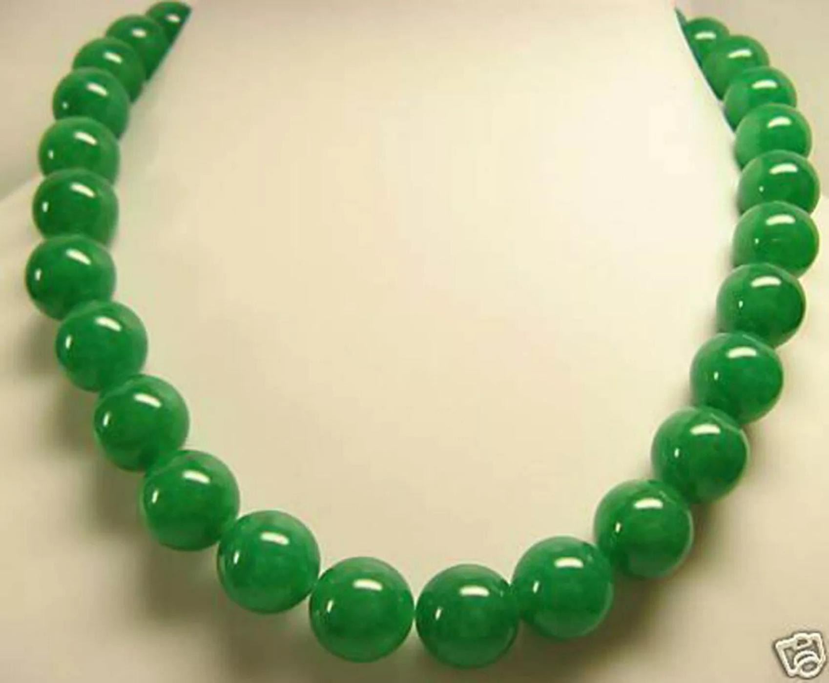 Green jade Quartz Necklace.....12 MM Beads...18 inch length