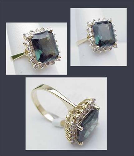 Green tourmaline and diamond ring 0.77ctw diamonds and 5.83ct tourmaline in 14kt yellow gold. 6.8gr finger size 6 1/2