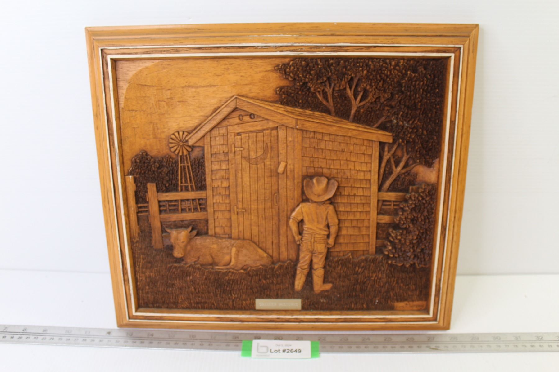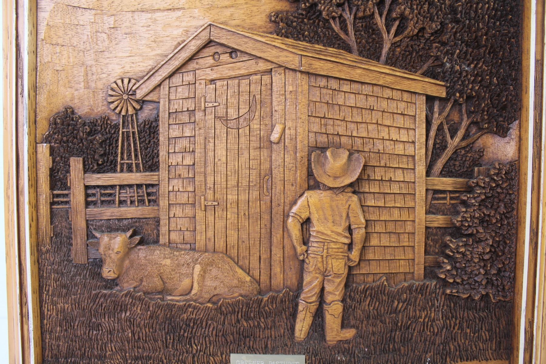 Greener Pastures - Embossed Plastic Picture of Boy at Outhouse