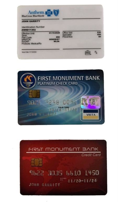Collection of props made for John Garrity (Gerard Butler) including a bank check card, a credit card and a Blue Cross Blue Shield Medical Card. Items possible not seen in final cut of the film.