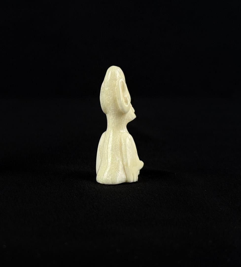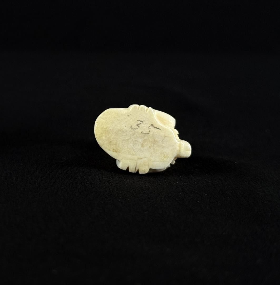 2" by 1" by 3/4". Carved Walrus Ivory. Native made prior to 1972. This item cannot be shipped to Oregon, California, Hawaii, New York, New Jersey, Internationally, or any other state that prohibits.