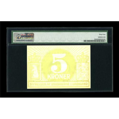 Greenland State Note 5 Kroner ND (1913) Pick 14