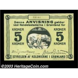 <TABLE cellSpacing=0 cellPadding=0 width="100%" bgColor=#000000 border=0><TBODY> <TR><TD width="100%"><TABLE cellSpacing=1 cellPadding=3 width="100%" border=0><TBODY><TR><TD width="100%" bgColor=#79735c><FONT face=arial color=#ffffff size=3><B>Description</B> </FONT></TD></TR><TR><TD width="100%" bgColor=#ffffff><FONT face=arial size=2><B>Greenland</B></I> 5 kroner (1913) Pick 14<BR>A scarce note with an appropriate Greenland vignette of a polar bear. Choice-Gem Cu with sharp edges and corners. </FONT></TD></TR></TBODY></TABLE></TD></TR></TBODY></TABLE><BR><A name=PricesRealized></A><TABLE cellSpacing=0 cellPadding=0 width="100%" bgColor=#000000 border=0><TBODY><TR><TD width="100%"><TABLE cellSpacing=1 cellPadding=3 width="100%" border=0><TBODY><TR><TD width="100%" bgColor=#79735c><A name=PR><FONT face=arial color=#ffffff size=3><B>Previous Prices from Heritage Auctions</B> </FONT></A></TD></TR><TR><TD bgColor=#f6f6ed>No Prior Data Recorded </TD></TR><TR><TD bgColor=#ffffff><FONT face=arial size=1 ?>PLEASE NOTE: All prices realized reflect the final hammer price PLUS the buyer's premium in auctions that charge a buyer's premium. Each item has a notation at the top of the listing indicating whether that lot included a buyer's premium. Example: A item that sells with a final hammer price of $100 and a 20% buyer's premium will display with a price realized of $120. All information listed is intended to be as accurate as possible, but errors are possible. Please use this guide carefully and inform us of any inaccuracies. </FONT></TD></TR></TBODY></TABLE></TD></TR></TBODY></TABLE><BR><TABLE cellSpacing=0 cellPadding=0 width="100%" bgColor=#000000 border=0><TBODY><TR><TD width="100%"><TABLE cellSpacing=1 cellPadding=3 width="100%" border=0><TBODY><TR><TD width="100%" bgColor=#79735c colSpan=6><FONT face=arial color=#ffffff size=3><B>Price Guide*</B> </FONT></TD></TR><TR bgColor=#f6f6ed><TD align=middle><B>Grade</B> </TD><TD align=middle><B>Coin World<BR>(Trends)</B> </TD><TD align=middle><B>Numismedia<BR>Retail</B> </TD><TD align=middle><B>Numismedia<BR>Wholesale</B> </TD><TD align=middle><B>Coin<BR>Universe</B> </TD><TD align=middle><B>Heritage<BR>Value Index</B> </TD></TR><TR bgColor=#ffffff><TD colSpan=6><FONT size=1>*All information listed is intended to be as accurate as possible, but errors are possible. No item may be returned or refused based on this information which is provided as a service to our customers. You should contact each pricing source directly to determine the accuracy of this information. </FONT></TD></TR></TBODY></TABLE></TD></TR></TBODY></TABLE><BR><TABLE cellSpacing=0 cellPadding=0 width="100%" bgColor=#000000 border=0><TBODY><TR><TD width="100%"><TABLE cellSpacing=1 cellPadding=3 width="100%" border=0><TBODY><TR><TD width="100%" bgColor=#79735c><FONT face=arial color=#ffffff size=3><B>Population Guide</B> </FONT></TD></TR><TR bgColor=#ffffff> Important notice: Heritage usually auctions material at the rate of 200-250 lots per hour. On some occasions eBay Live bid software or the Internet may not be able to keep up with the pace of the auction. We recommend placing a realistic absentee bid now as insurance to avoid disappointment. Occasionally the auctioneer may eliminate or reject an eBay Live bid, and the auctioneer may also reopen a lot after the close of the eBay live bidding (usually because we missed an audience bid), and may reject your bid even if it shows you as the winning bidder. By bidding via eBay Live, you agree that Heritage may award the lot to another bidder at its sole discretion under the circumstances described above or any other reasonable circumstances. Also please note that all Heritage lots purchased through eBay Live carry a 20% Buyer's Premium. Please make sure you read the Terms and Conditions before you bid.</TD></TR></TBODY></TABLE></TD></TR></TBODY></TABLE>