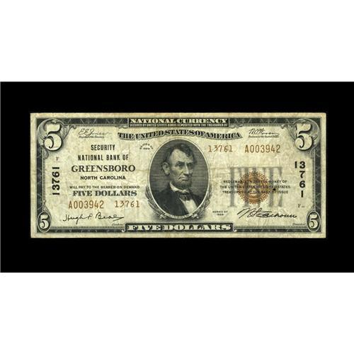 Greensboro, NC - $5 1929 Ty. 2 Security NB Ch. # 13761