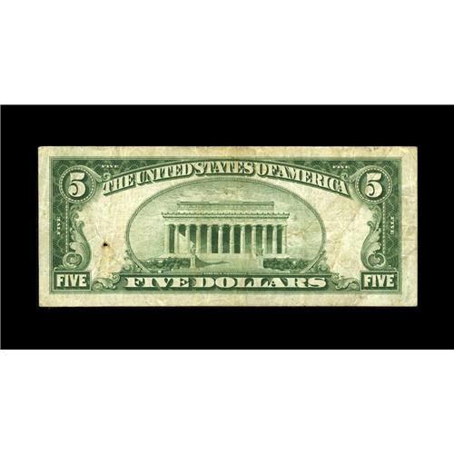 <B>Greensboro, NC</B></I> - $5 1929 Ty. 2 <B>Security NB </B></I> Ch. # 13761<BR>A hole is noticed on this scarcer type note which we will call <B>Fine+.</B></I>