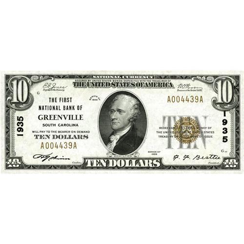 Greenville, SC - $10 1929 Ty. 1 The First NB Ch. # 1935