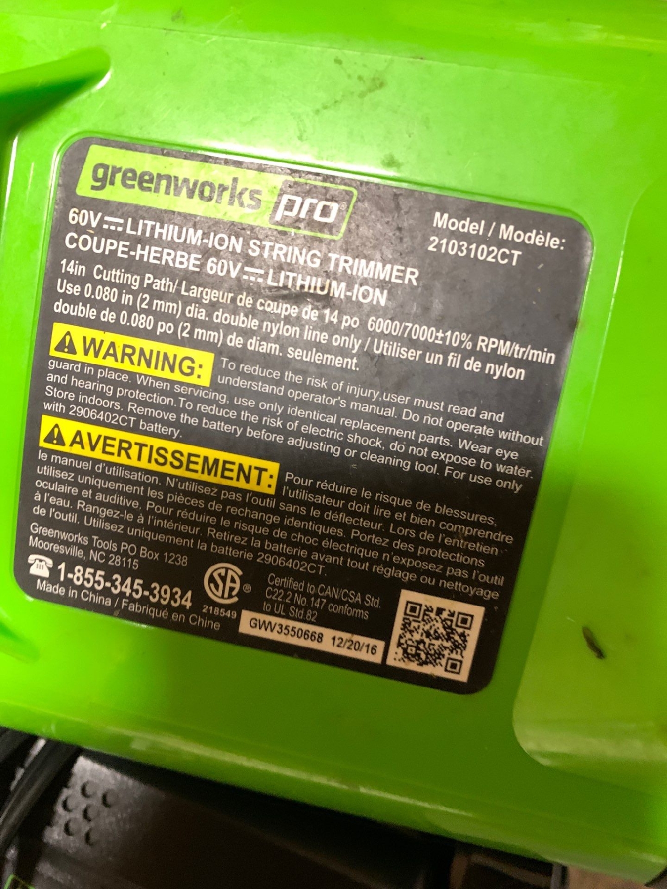 Greenworks Pro String Trimmer Model No. 2103102CT