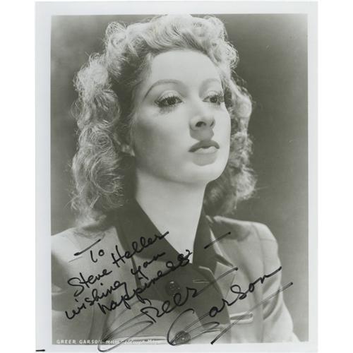 <B>Greer Garson Signed Photo.</B></I> A b&w 8" x 10" photo inscribed and signed by the actress in black ink, in Excellent condition.<BR><BR><b>Shipping:</b> Flat Material, Small (<a target="_blank" href="http://www.heritageauctions.com/common/shipping.php">view shipping information</a>) <BR><BR><B>Important noti