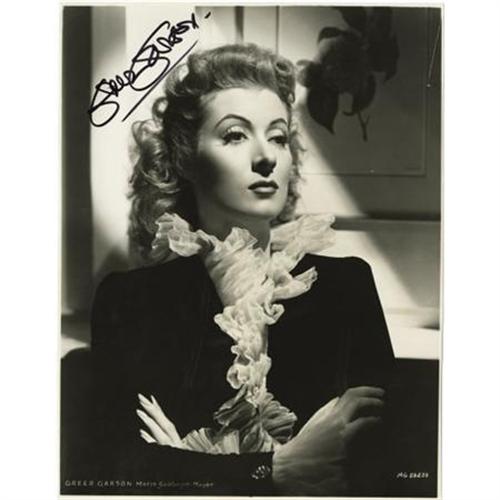 <B>Greer Garson Signed Photo.</B></I> A stunning b&w 8" x 10" photo of the Academy Award-winning actress, signed by her in black felt tip. In Excellent condition.<BR><BR><b>Shipping:</b> Flat Material, Small (<a target="_blank" href="http://www.heritageauctions.com/common/shipping.php">view shipping information</a>)